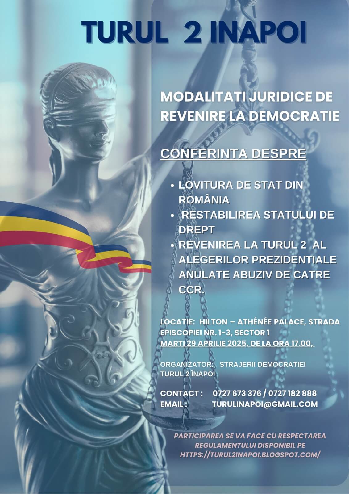 Invitație la Conferința Publică: TURUL 2 ÎNAPOI Modalități juridice de restaurare a statului de drept: cum se poate reveni la…